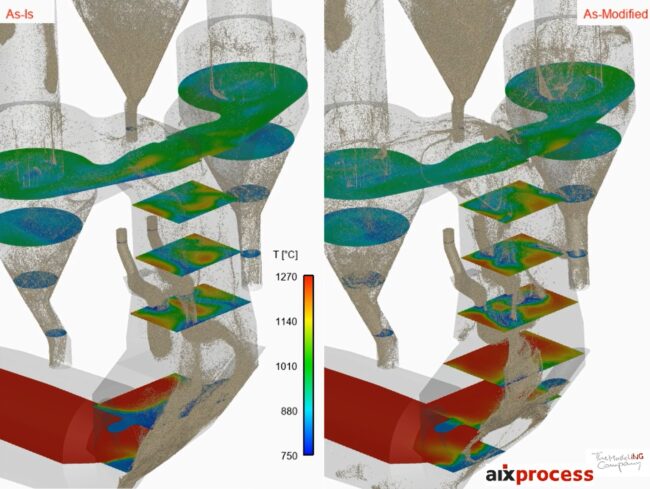 This video, courtesy of aixprocess GmbH, shows how the meal-drop to the kiln inlet shelf for a cement plant has been massively reduced through a simple modification, informed by Barracuda Virtual Reactor simulation.