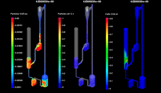 This video shows Barracuda Virtual Reactor simulation results for a thermal, reacting, chemical looping combustion (CLC) system with oxygen uncoupling (CLOU).
