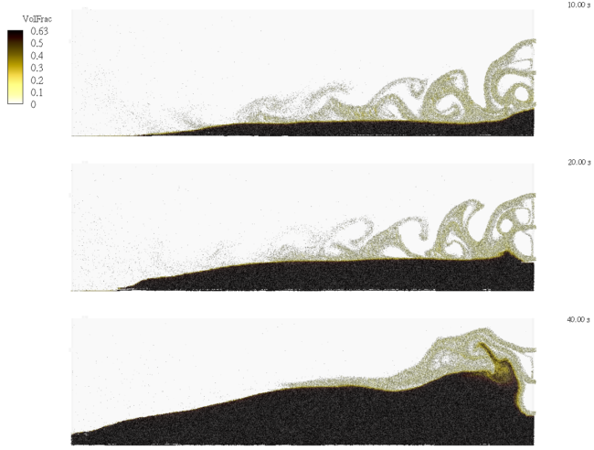 This application model simulates proppant transport in hydraulic fractures, capturing fluidization, sedimentation, and particle size effects to help optimize fracture coverage and well productivity.
