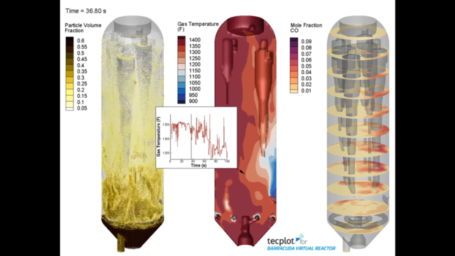 This video, created in conjunction with the National Energy Technology Laboratory (NETL), demonstrates the early use of Barracuda Virtual Reactor for the simulation of a full-loop, cold-flow carbon capture unit (C2U).