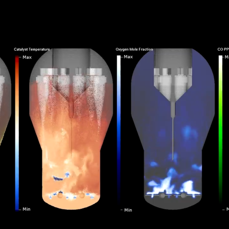 This video shows the hydrodynamics, thermal profile and effect of combustion reactions in an FCC regenerator.