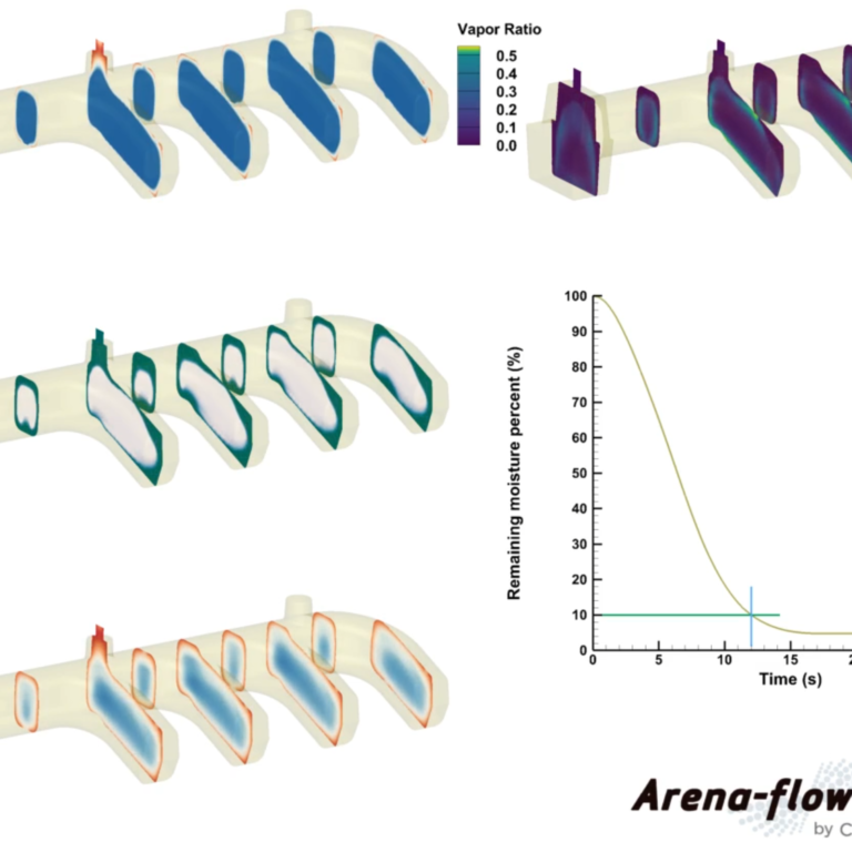 Arena-flow, by CPFD, models the air-driven sand flow critical to the creation of consistent, high-quality sand cores and molds for many processes including cold-box, shell, inorganics, greensand, hot-box, and warm-box. This video illustrates how air flow drags sand into the cavity.