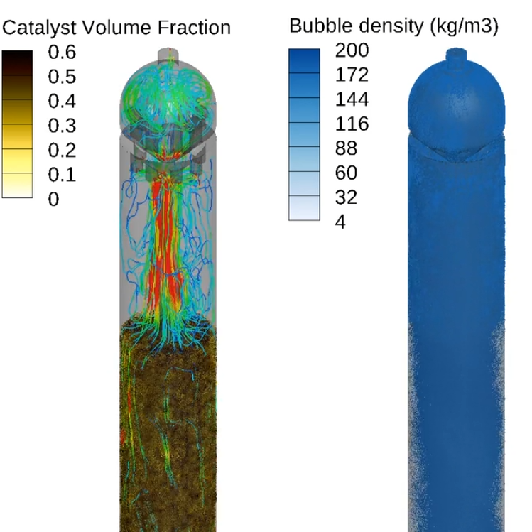 This video demonstrates the discrete bubble modeling feature introduced in Barracuda Virtual Reactor 22.1. The simulation models an ebullated bed reactor with a fluidized bed of catalyst particles in liquid phase domain, with discrete gas bubbles injected.