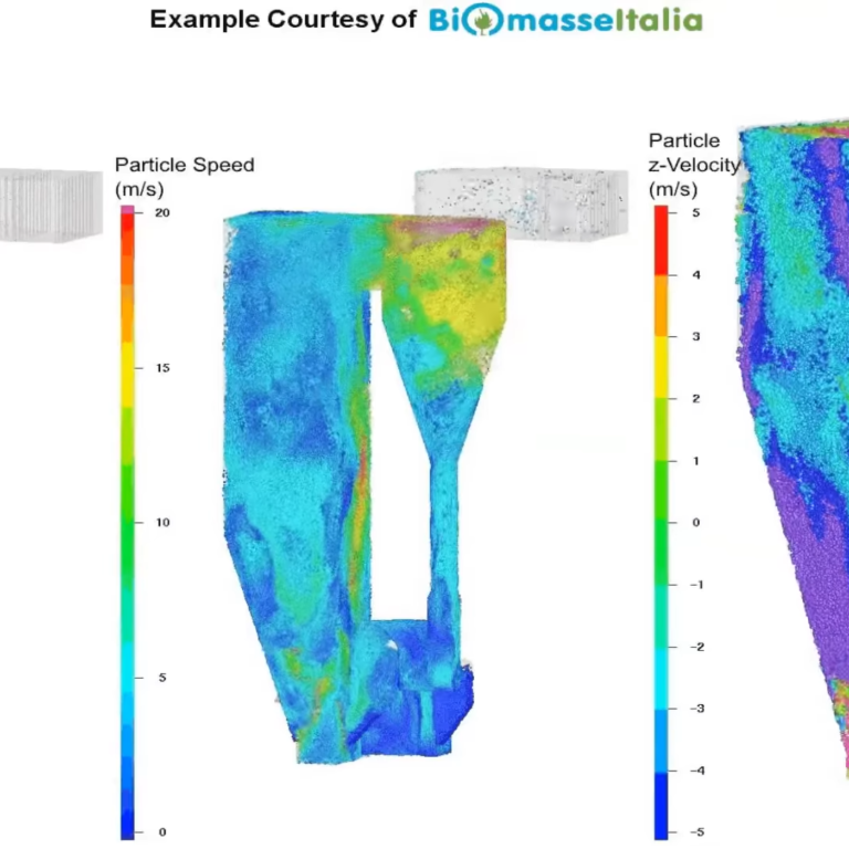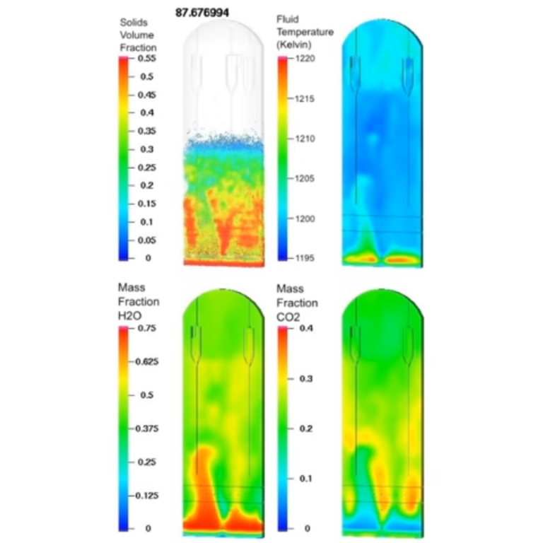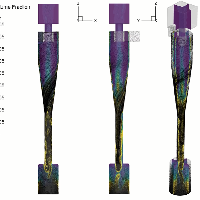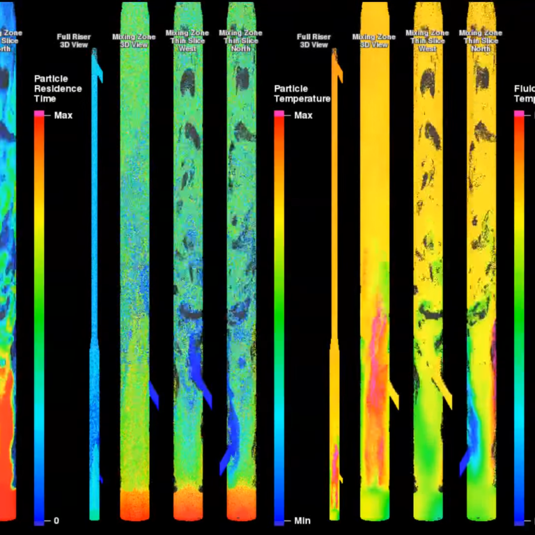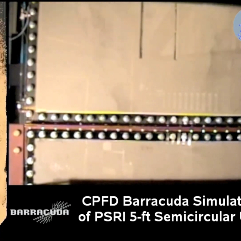 This video shows Barracuda Virtual Reactor® simulations results on the left, compared with large-scale test data from Particulate Solid Research, Inc. (PSRI) on the right.