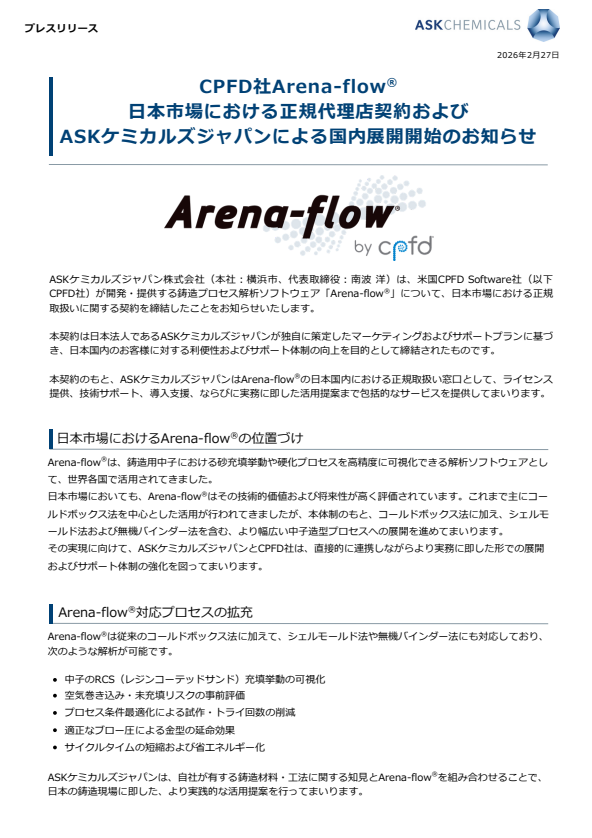 CPFD Software Announces Arena-flow Distribution Agreement with ASK Chemicals Japan
