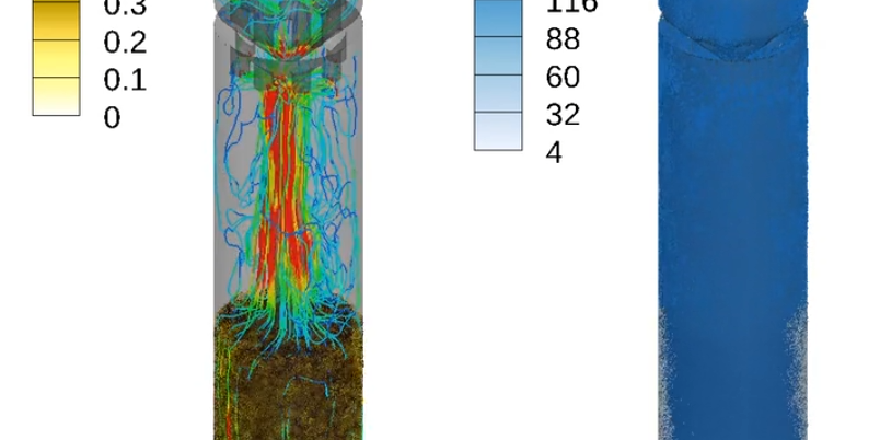 This video demonstrates the discrete bubble modeling feature introduced in Barracuda Virtual Reactor 22.1. The simulation models an ebullated bed reactor with a fluidized bed of catalyst particles in liquid phase domain, with discrete gas bubbles injected. Multiphase chemical reactions are included. Bubble density varies with vapor composition and hydrostatic pressure.