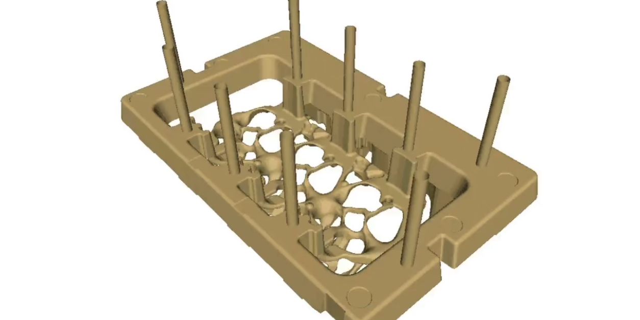 This video demonstrates the filling of an automotive cylinder head water jacket core produced via an amine-cured cold-box process. Arena-flow was used to simulate how core filling was influenced by core geometry, blow tubes, venting and core machine settings. The software predicted the presence of difficult to fill locations in the intricate pattern-forming surfaces in the water passages, and how the unbalance sand and air flow contributed to the issue. Arena-flow was subsequently used to identify and implement a more robust solution before implementation at the foundry.