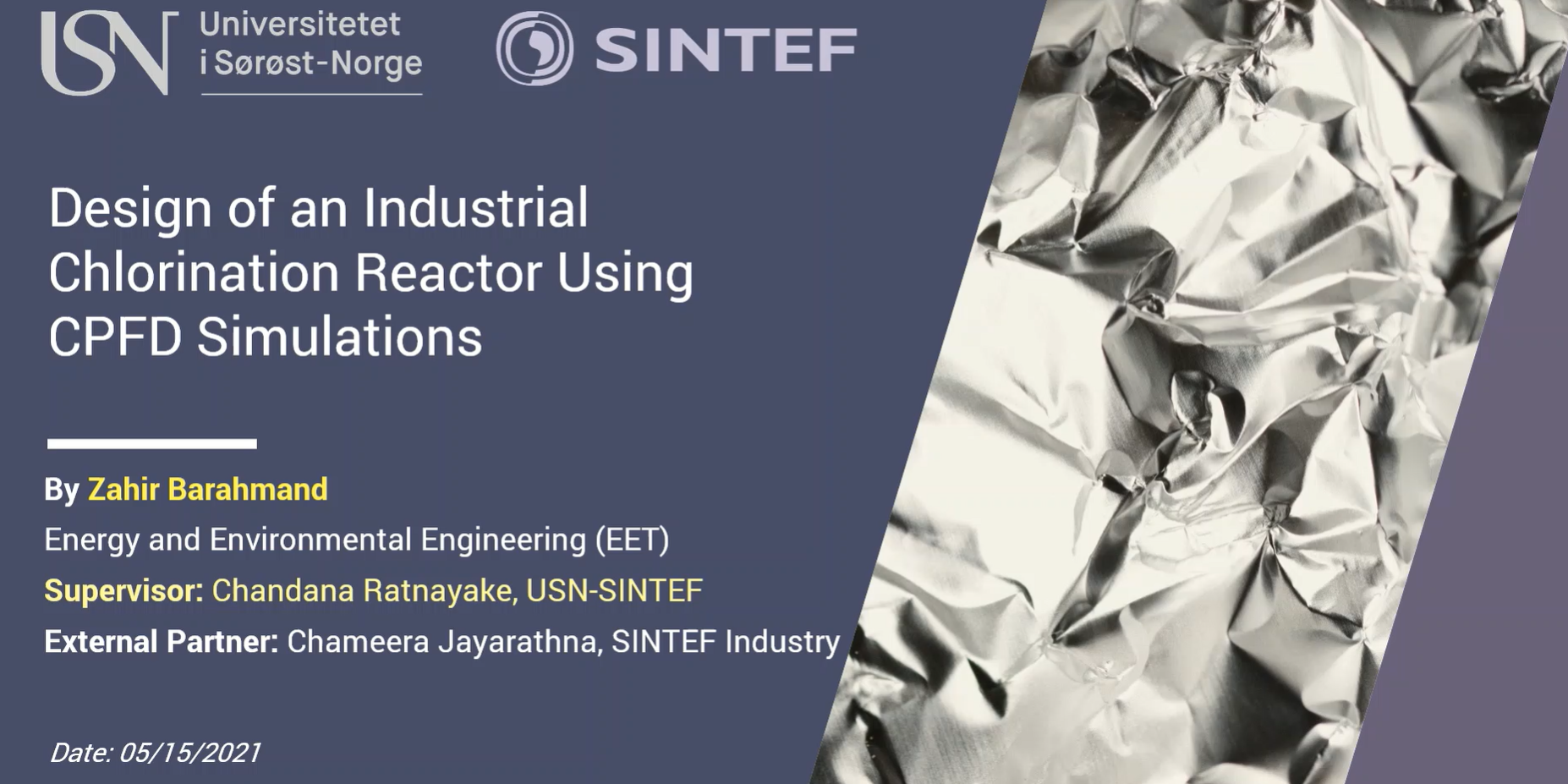 In continuation of Alcoa’s effort, the present study aims to investigate the possibility of a new sustainable and low-carbon aluminum production process by designing an industrial fluidized bed reactor equipped with an external (due to high corrosion inside the reactor) gas-solid separation unit to handle a total of 0.6 kg/s of solid reactants and produce aluminum chloride as the main product. The research focuses on determining the best bed height based on the available reaction rates, determining the best reactor dimension to reduce particle outflow under isothermal conditions (700°C), and optimization of the reactor to achieve minimum channeling in the bed, enhancing the hydrodynamics through Computational Particle Fluid Dynamic (CPFD) simulations using commercial software; Barracuda Virtual Reactor®. The optimization stage includes changes in the reactor geometry, fluid inflow pattern, and distribution system.