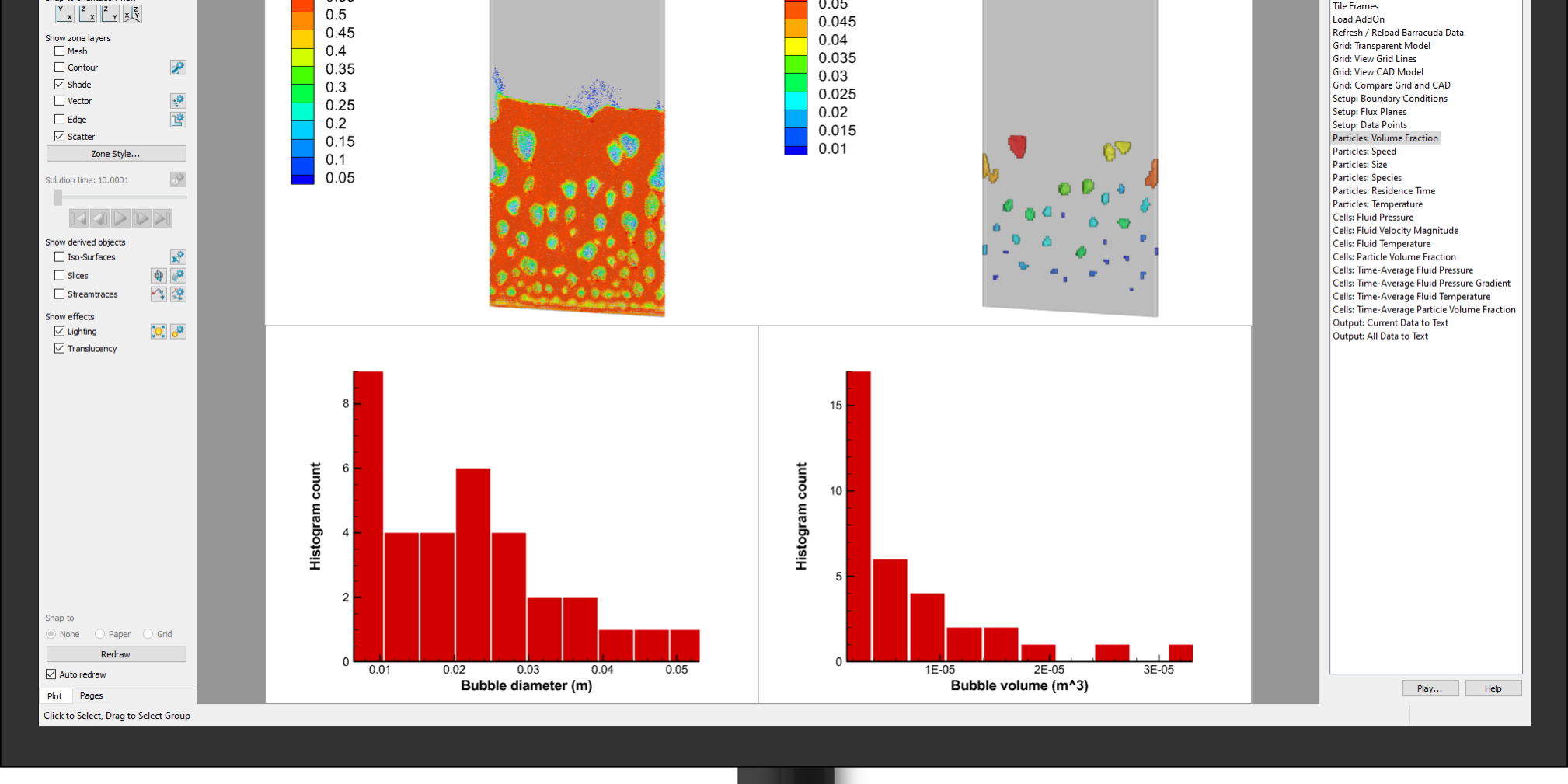 This webinar demonstrates how to use Tecplot for Barracuda to analyze bubble characteristics in simulations of fluidized beds. Using results from a bubbling fluidized bed simulation run with Barracuda Virtual Reactor, we highlight several powerful capabilities of Tecplot for Barracuda that allow us to get valuable engineering information such as bubble volume, diameter, and speed. These new capabilities are available in the Tecplot for Barracuda version included with Barracuda 21.0.1.